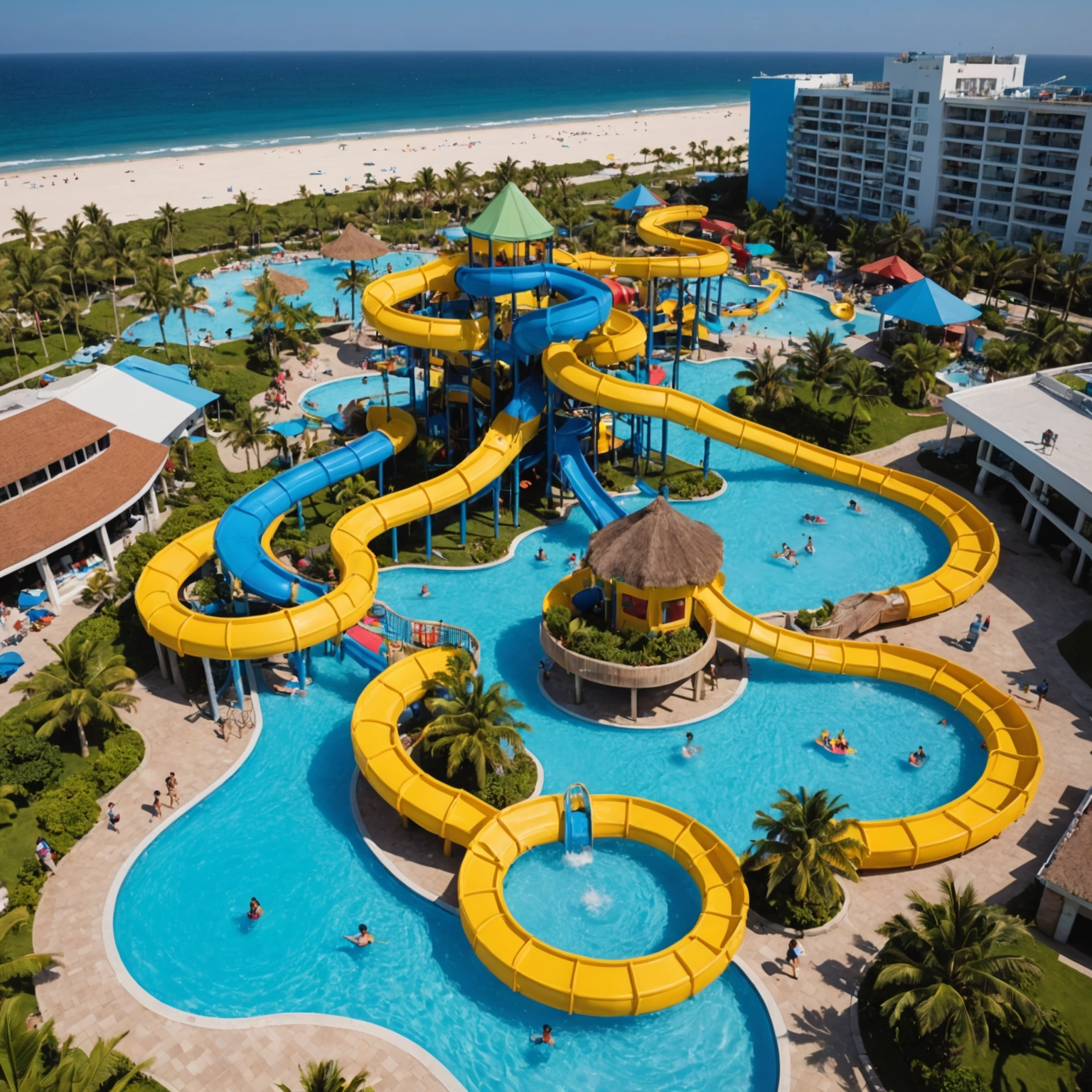 One of the resort’s standout features is its extensive array of amenities designed to pamper every guest. Lounge comfortably under swaying palm trees, or take a refreshing dip in the crystal-clear swimming pools. For those seeking a bit of adventure, the resort offers exciting water activities like paddleboarding, kayaking, and even a lazy river that drifts peacefully around the property. Kids love the dedicated play zones and interactive water features, making it a family-friendly destination that keeps everyone entertained. Meanwhile, adults can unwind at the resort’s luxurious spa or enjoy a cocktail at the tiki bar overlooking the beach.