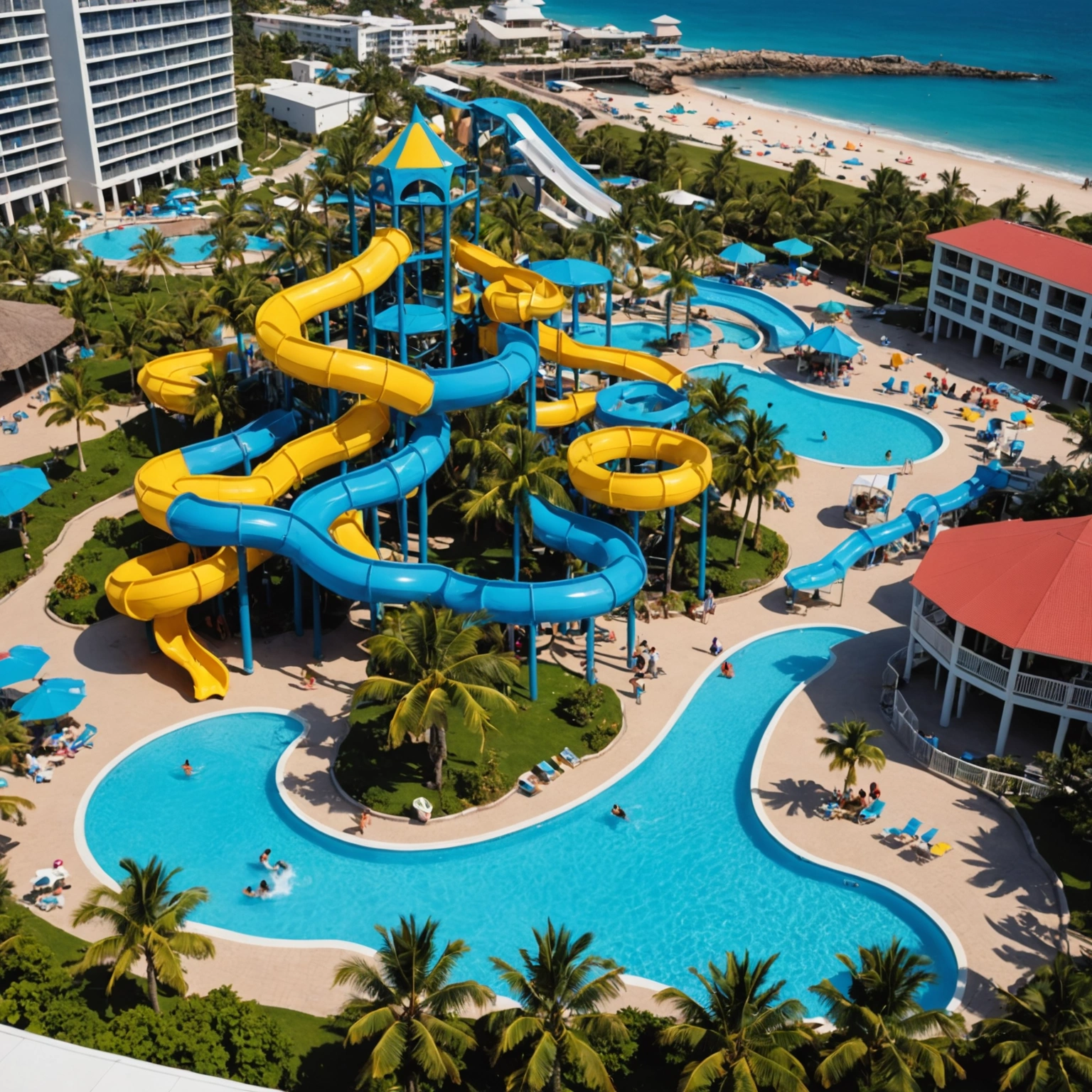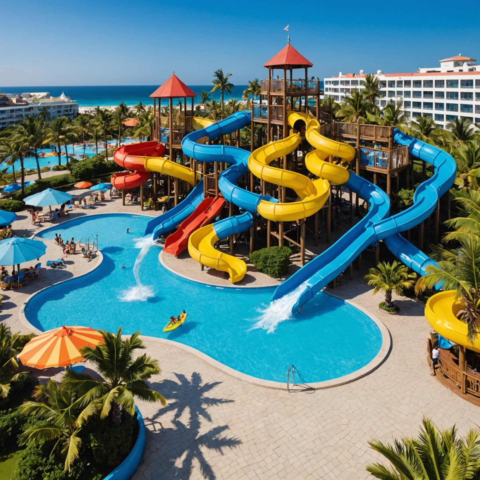The resort boasts a stunning beachfront with pristine, soft white sands and crystal-clear waters that are perfect for swimming, paddleboarding, or simply soaking up the sun. For those seeking relaxation, the luxurious cabanas and lounge chairs provide the perfect spot to unwind with a cold drink in hand. Kids and the young at heart will love the lively water park featuring thrilling slides, splash pads, and lazy rivers—guaranteed to keep everyone entertained. And if you're looking for a more tranquil experience, take a peaceful stroll along the shoreline or indulge in a rejuvenating massage at the on-site spa.