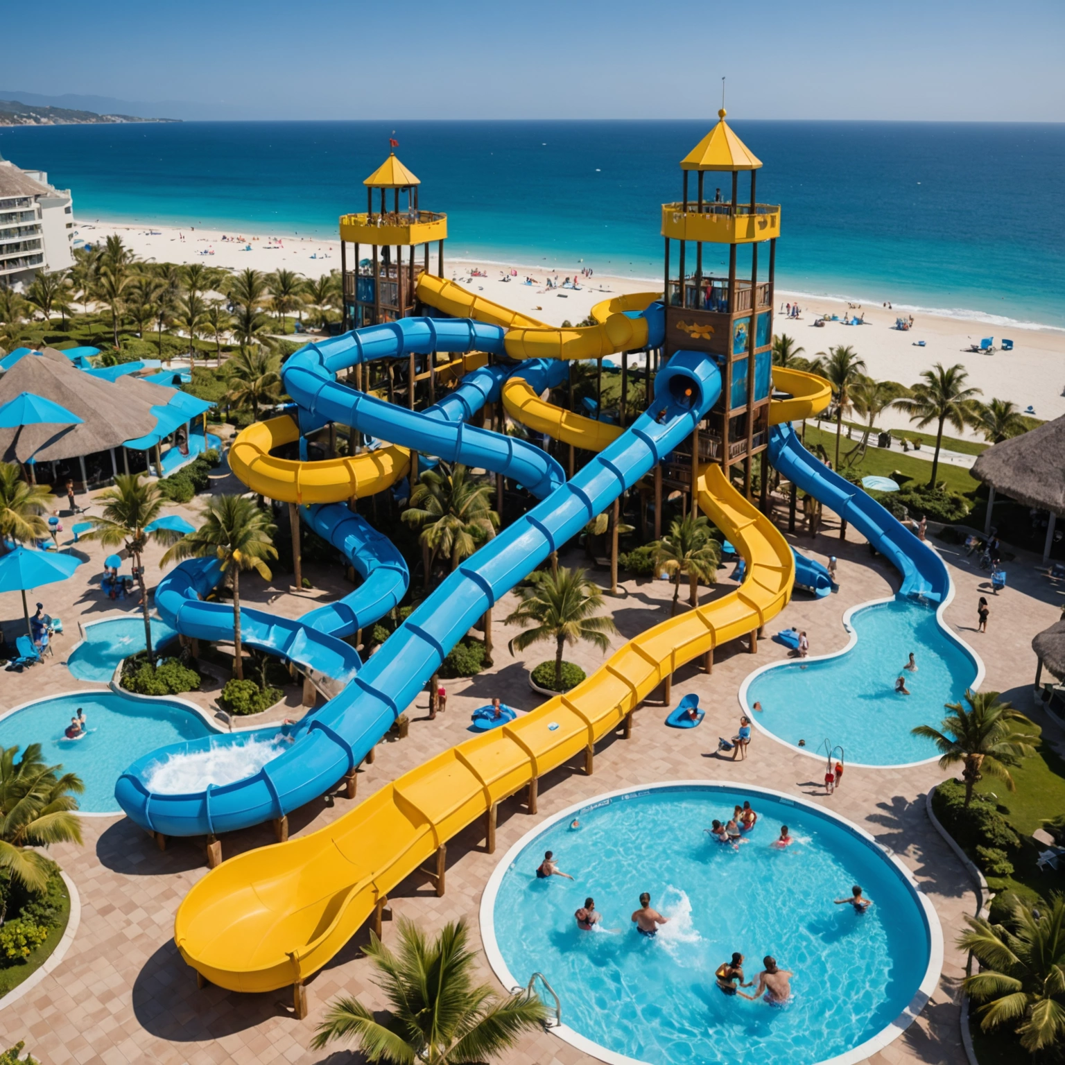 As you arrive at Polaris Beach Resort, you'll be greeted by a lively, inviting atmosphere brimming with vibrant colors and tropical decor. The resort boasts a sprawling sandy beach area perfect for building sandcastles, playing beach volleyball, or simply lounging with a good book. For those looking to cool off, the resort’s large, sparkling pool features winding lazy rivers, splash zones for the little ones, and even a swim-up bar for the grown-ups. Whether you're soaking up the sun or taking a refreshing dip, every moment promises fun and relaxation.