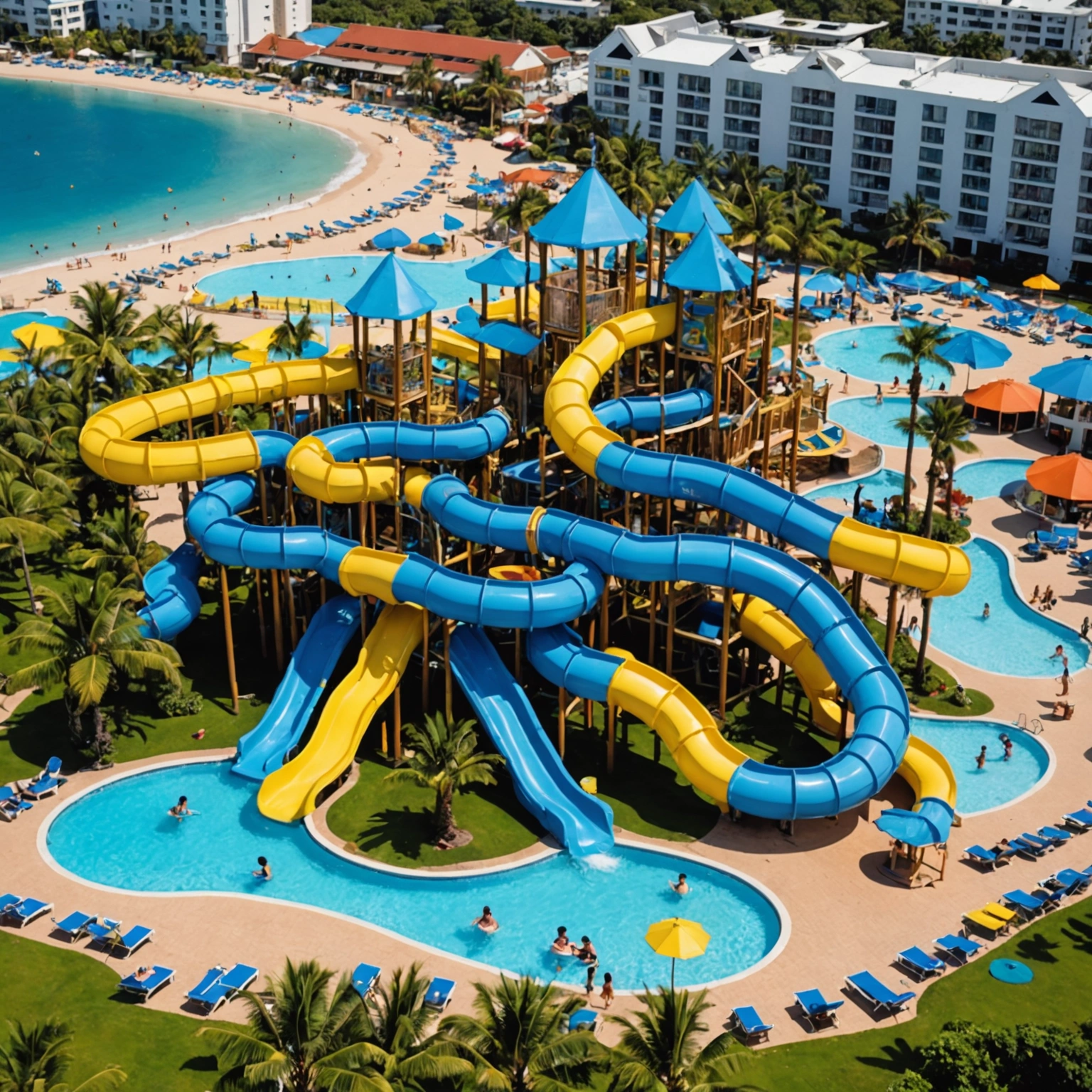 The resort boasts a wide array of amenities designed to keep every family member entertained. Kids will love the interactive water play zones, complete with splash pads, lazy rivers, and thrilling slides that make every moment an adventure. For those seeking a bit of relaxation, the resort’s luxurious pools and hot tubs provide perfect spots to unwind while enjoying the stunning views. Adults can indulge in spa treatments or lounge in secluded cabanas with refreshing drinks in hand. Meanwhile, the lush, landscaped gardens and palm-lined walkways create a tropical ambiance that transports you far away from everyday life.